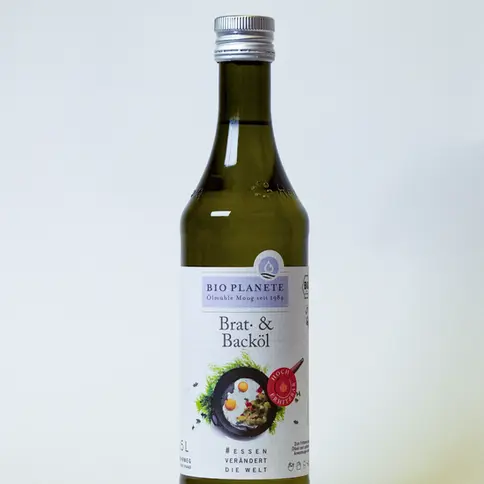 Das hoch erhitzbare Brat- und Backöl ist besonders gut zum kurzen, scharfen Anbraten von Fleisch, Fisch oder Gemüse sowie zum Backen und Frittieren geeignet. In der Backstube kann es für feines Mürbegebäck oder Kuchen die Butter ersetzen.