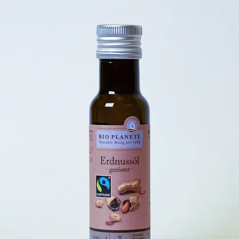 Erdnussöl geröstet - ideal für die asiatische Küche zum Backen und Braten. Bio-Erdnussöl mit Fairtrade-Siegel.Das Erdnussöl geröstet wird ausschließlich aus Fairtrade-Erdnüssen von ausgewählten chinesischen Landwirten gepresst. Dank des Fairtrade-Projekts können wir sicherstellen, dass Kleinbauern vor Ort moderne Ausrüstung, einen Zugang zu landwirtschaftlichem Wissen und faire Preise für ihre Erdnüsse aus ökologischem Anbau erhalten. Diese Form der Partnerschaft ermöglicht Investitionen vor Ort und nachhaltig strukturelle sowie wirtschaftliche Verbesserungen. Das Öl wird zu 100 % aus Fairtrade-zertifizierten Erdnüssen gepresst. Zertifiziert durch die Schweizer Max Havelaar Stiftung können wir unseren Kundinnen und Kunden so ein Fairtrade-Erdnussöl nach höchsten ökologischen und sozialen Standards anbieten.
